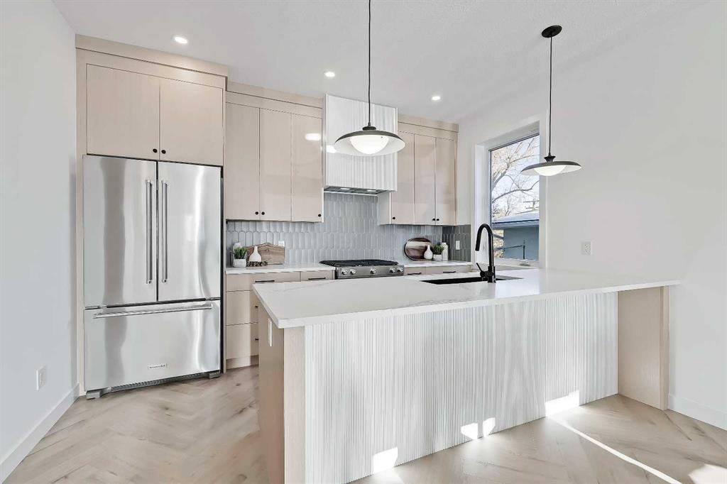 Move into the heart of South Calgary today with this brand-new, walkout townhome that perfectly blends luxury, location, and low-maintenance living! Thoughtfully designed w/ 3 beds, 2.5 baths, and a LEGAL 1 BED SUITE (approved by the city), this is inner-city living without compromise! The interiors strike a perfect balance between modern luxury & livable design. Find high-end finishes that are rare to find at this price point — blonde wood tones, sleek custom cabinetry, and modern & thoughtful tile. Design...