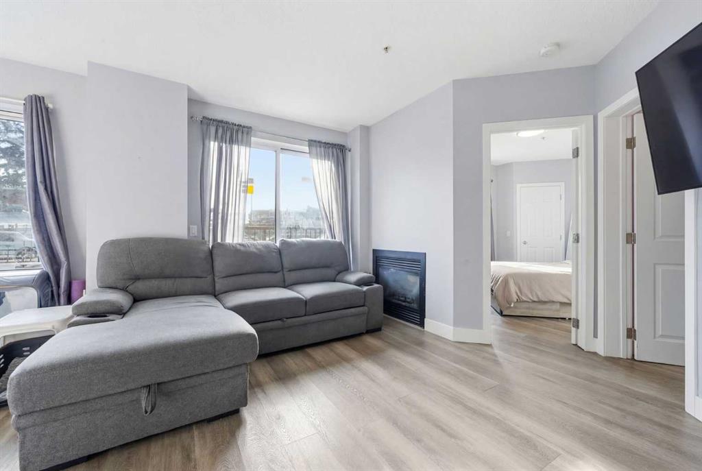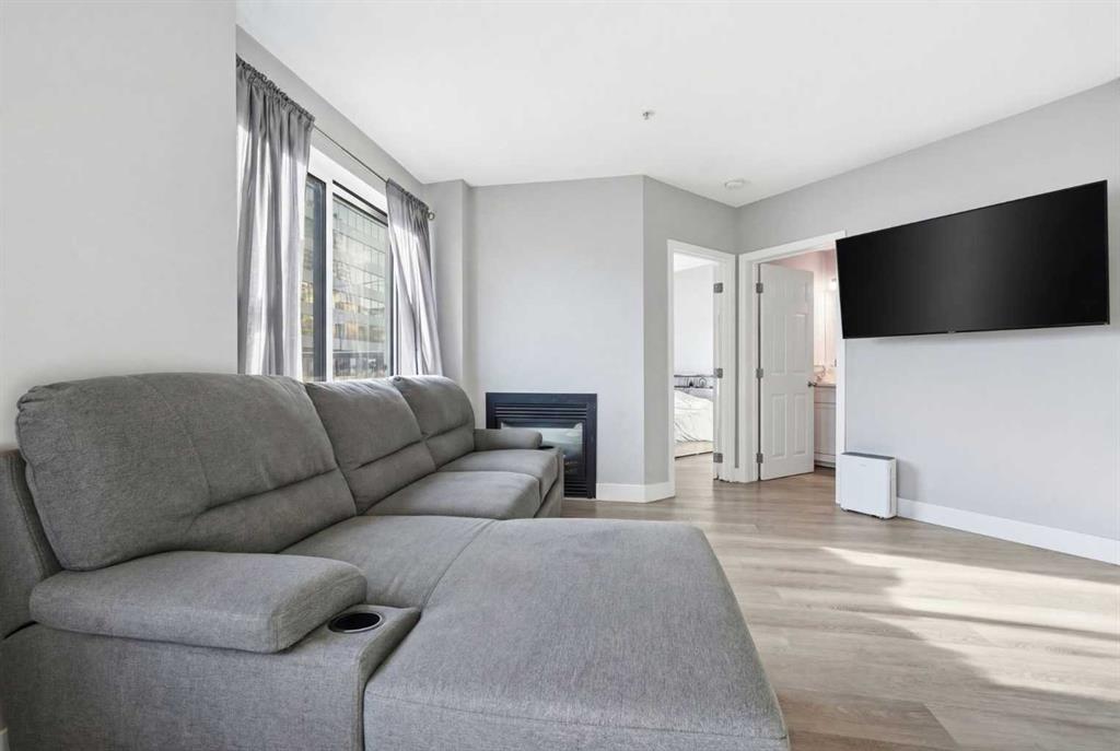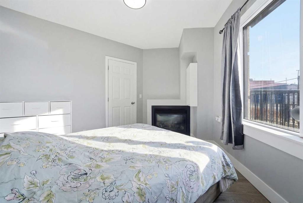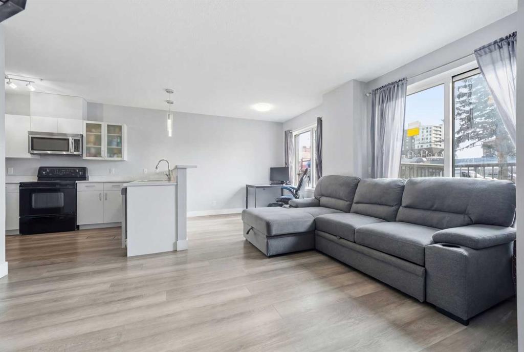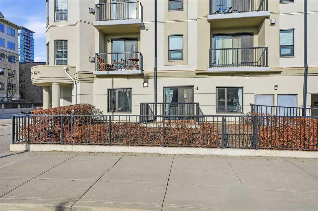 Welcome to this beautifully updated, south-facing ground-level condo in the heart of downtown Calgary — a rare offering with no neighbors on either side, as the only ground-floor unit in the building. Enjoy incredible natural light all day with two south-facing living room windows, a south-facing bedroom window, and a south-facing private balcony. The open-concept layout features stylish LVP flooring, quartz countertops, stainless steel appliances, in-suite laundry, and a cozy double-sided fireplace connec...