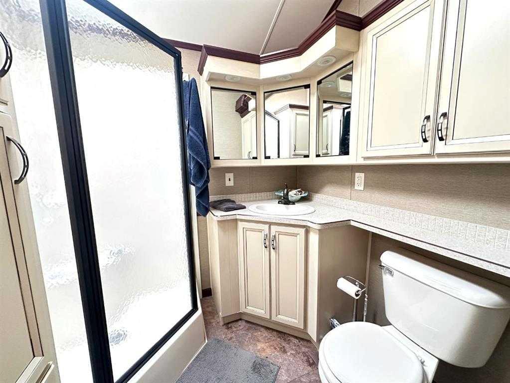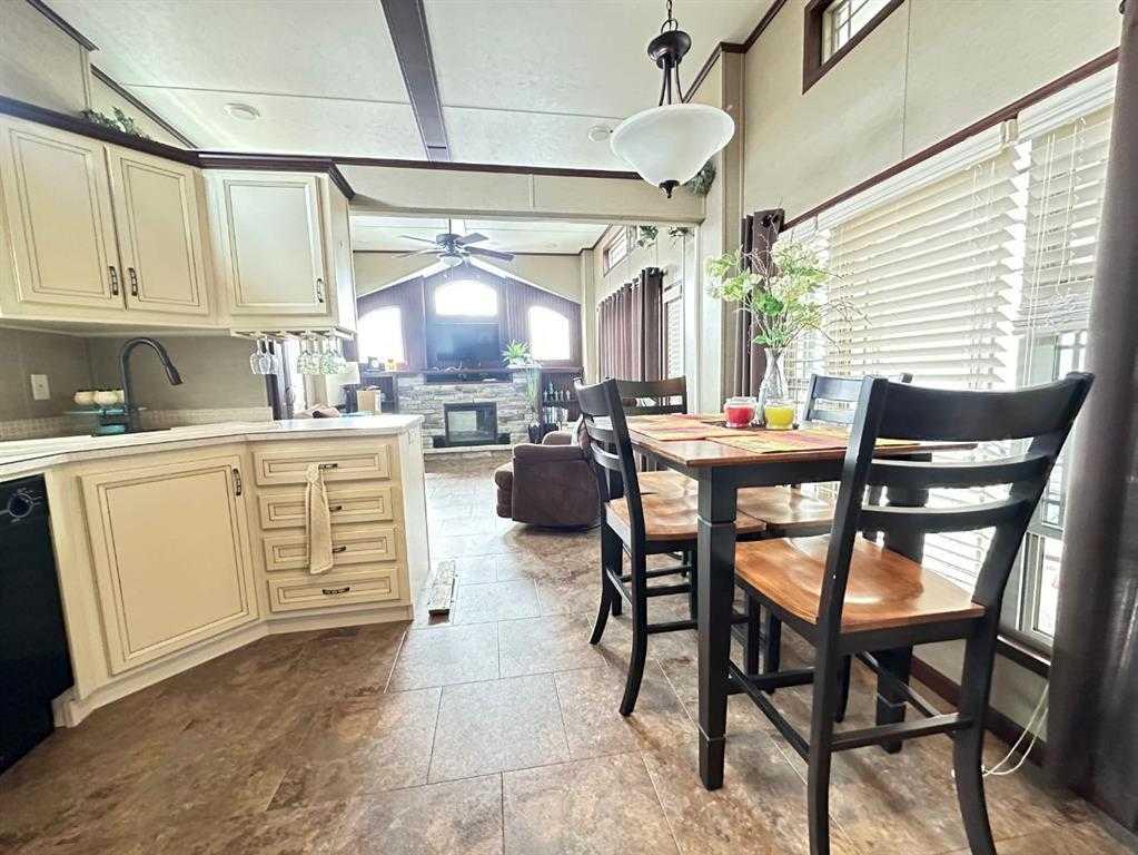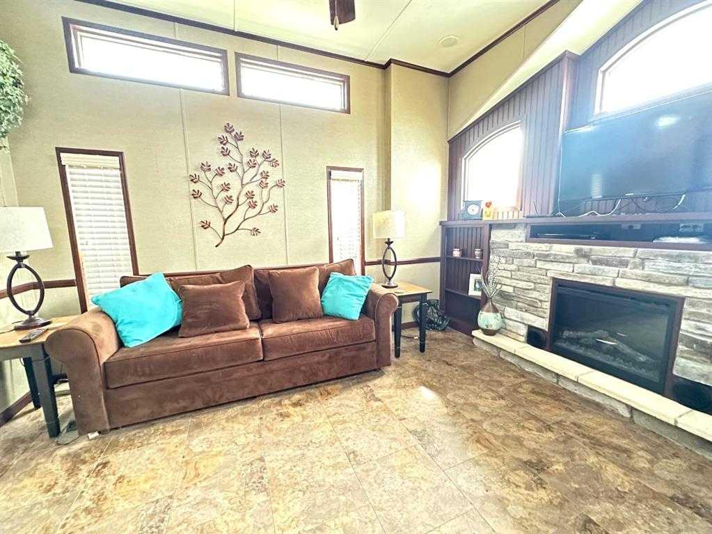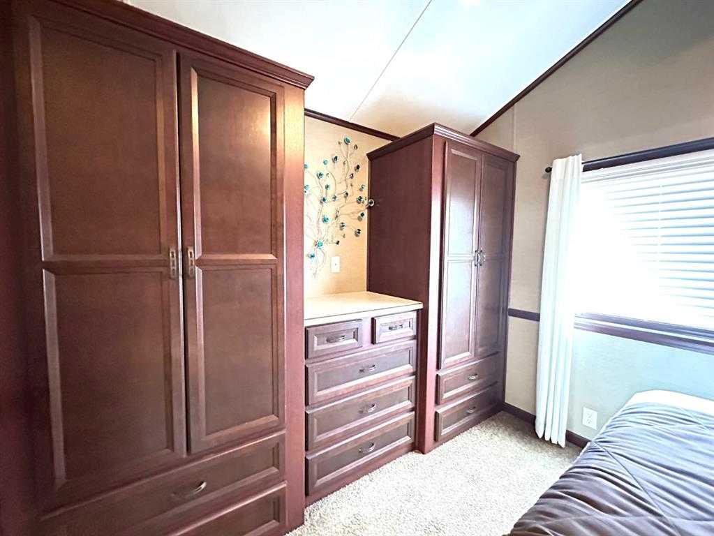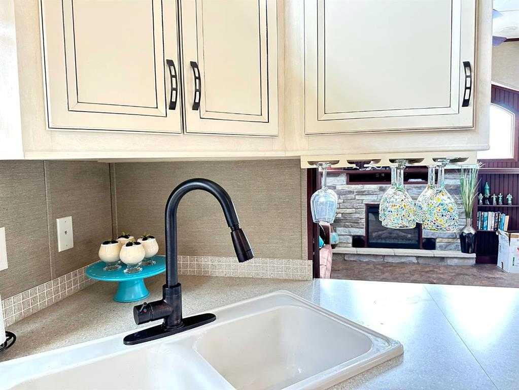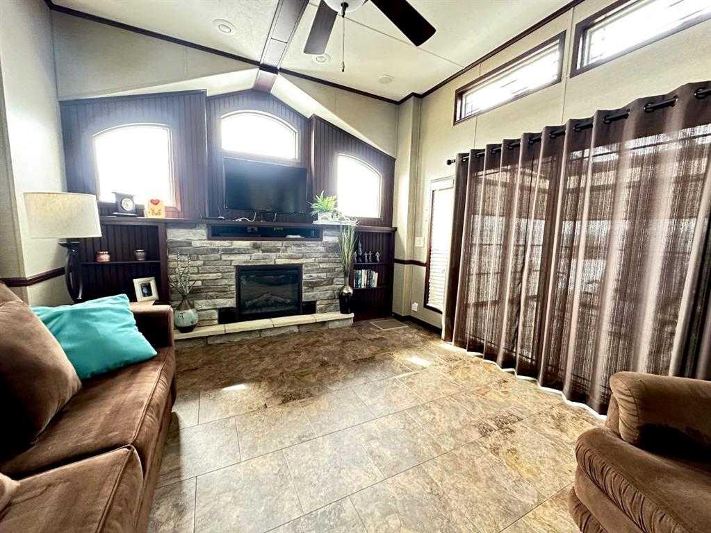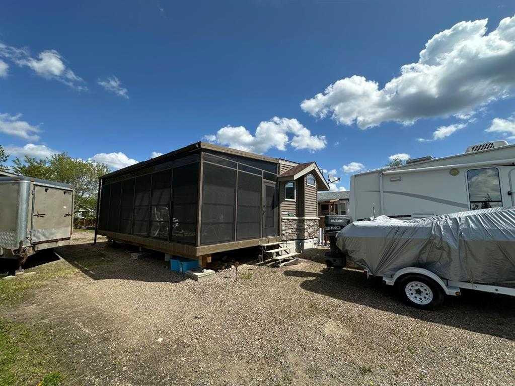Welcome to 1115 Oak Avenue at Lauman's Landing. A beautifully laid out park model with gorgeous finishes and 10 foot ceilings. A pull out hidden wall between the kitchen and living room offers privacy making the front of the home into a second bedroom. From the cozy fireplace with remote to the light coloured cabinets in the kitchen with its full size fridge and stove. A good size bedroom with king bed, a wall of built-in storage and lit vanity. The 3 piece bathroom with skylight. The home supplies surroun...