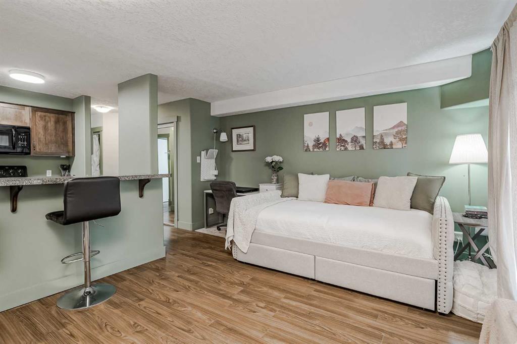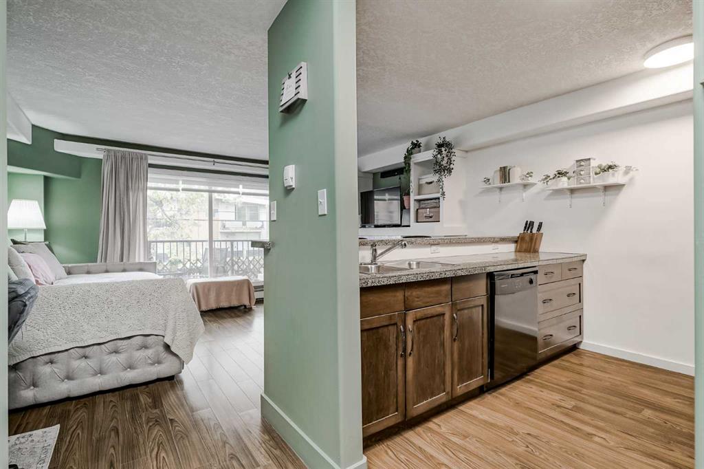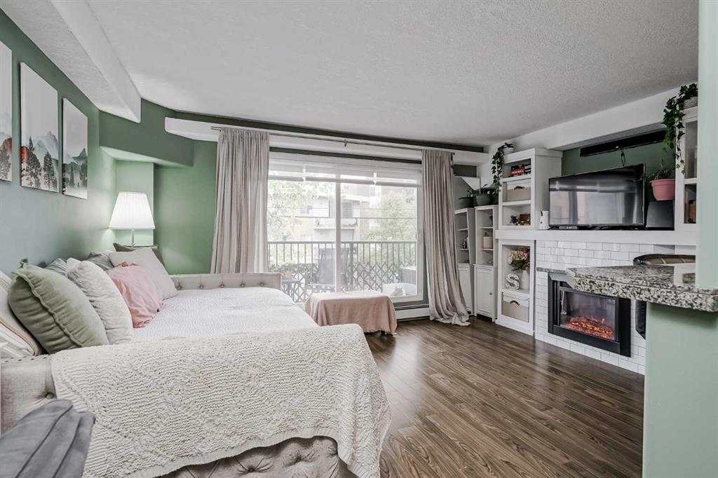 OPEN HOUSE Sunday October 12th 2pm-4pm. Perfect property for investors or a first-time owner. Unbelievable price for this open concept studio apartment, minutes from downtown in the sought after neighbourhood of Crescent Heights! You’ll be amazed at how much storage and counter space you have in this open to living space kitchen with granite countertops, breakfast bar seating and rich walnut coloured wood cabinets paired with sleek black appliances. Relax beside your built-in electric fireplace on those col...
