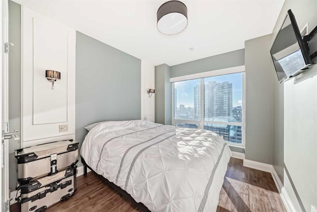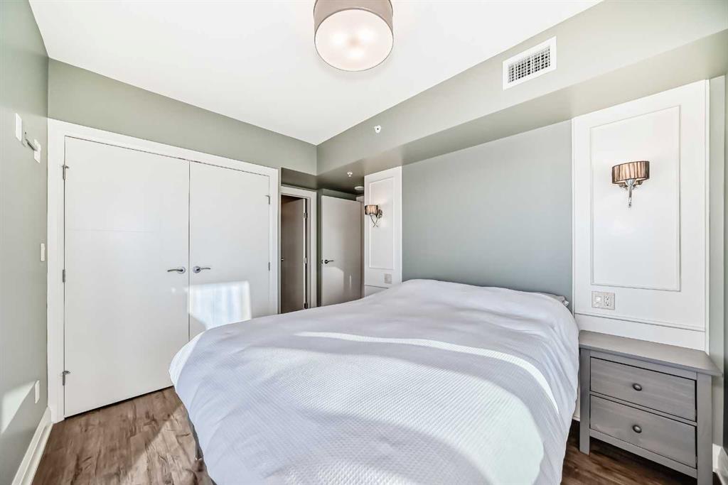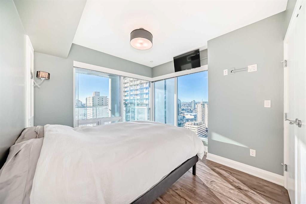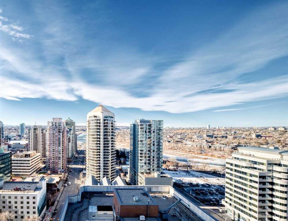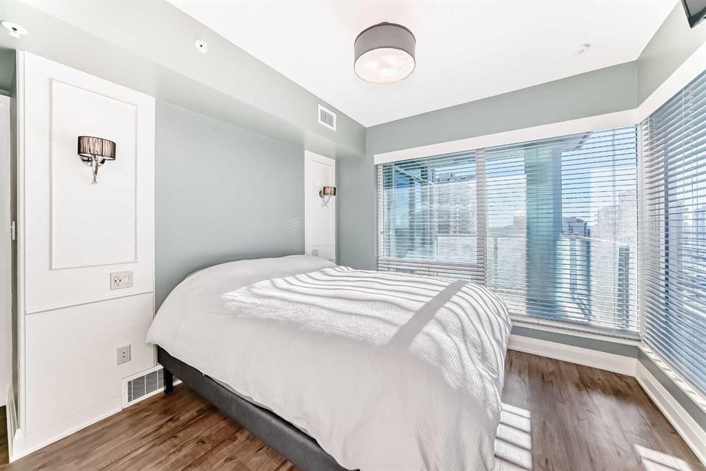 Experience the pinnacle of downtown luxury in this 2 bedroom, 2 bathroom, titled parking, SW-facing corner unit at VOGUE. Sold fully furnished and turnkey, this "Orion" floorplan is situated on one of the exclusive "Bedouin Suites" floors, featuring elite upgrades not found in the rest of the building. Floor-to-ceiling windows frame breathtaking mountain and river views, flooding the space with natural light. The interior boasts premium walnut built-ins, custom bedroom paneling, and a chef-inspired kitchen...