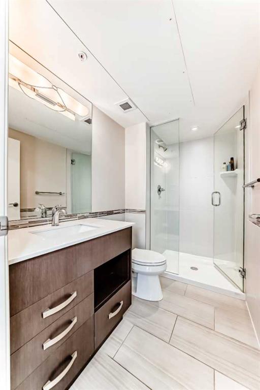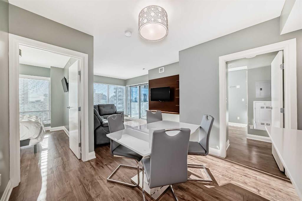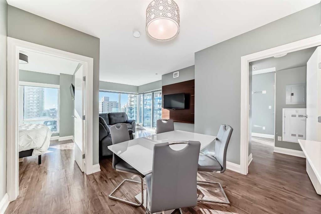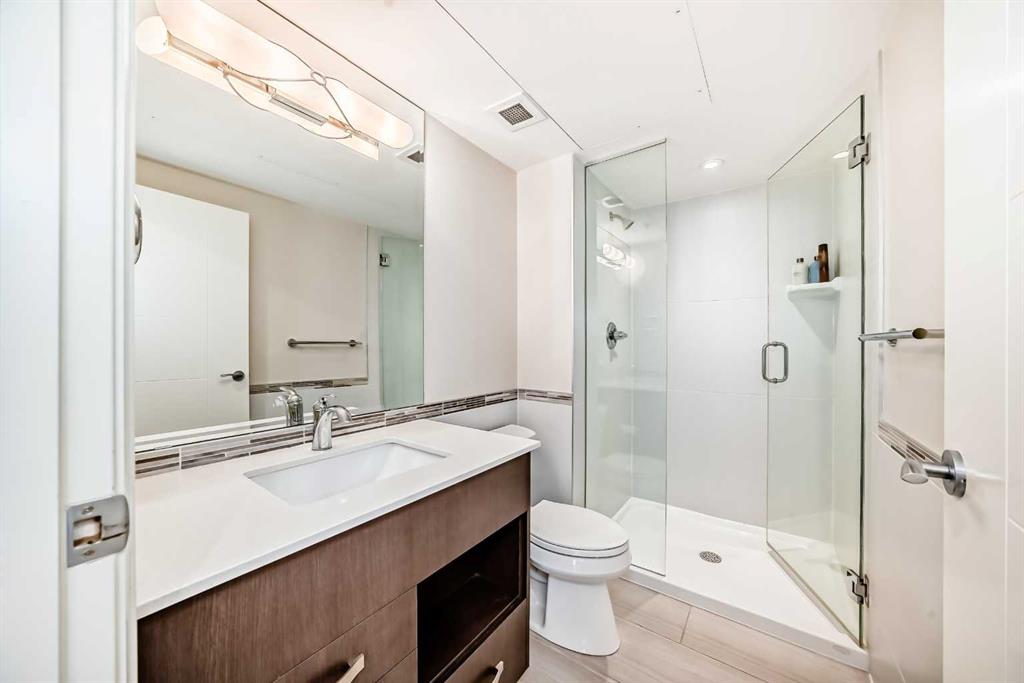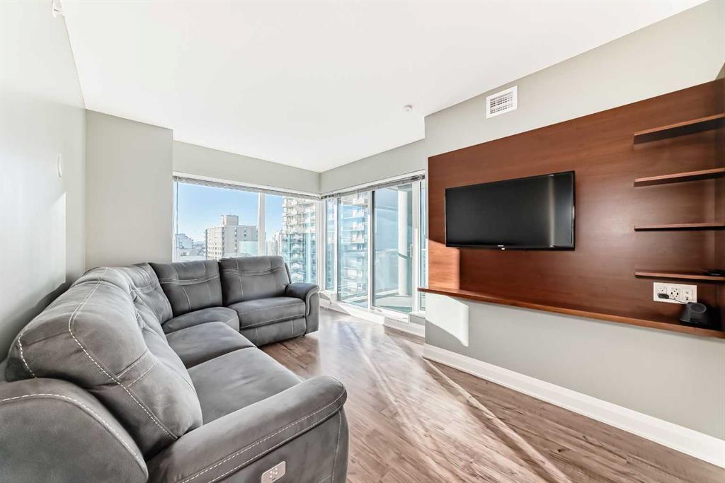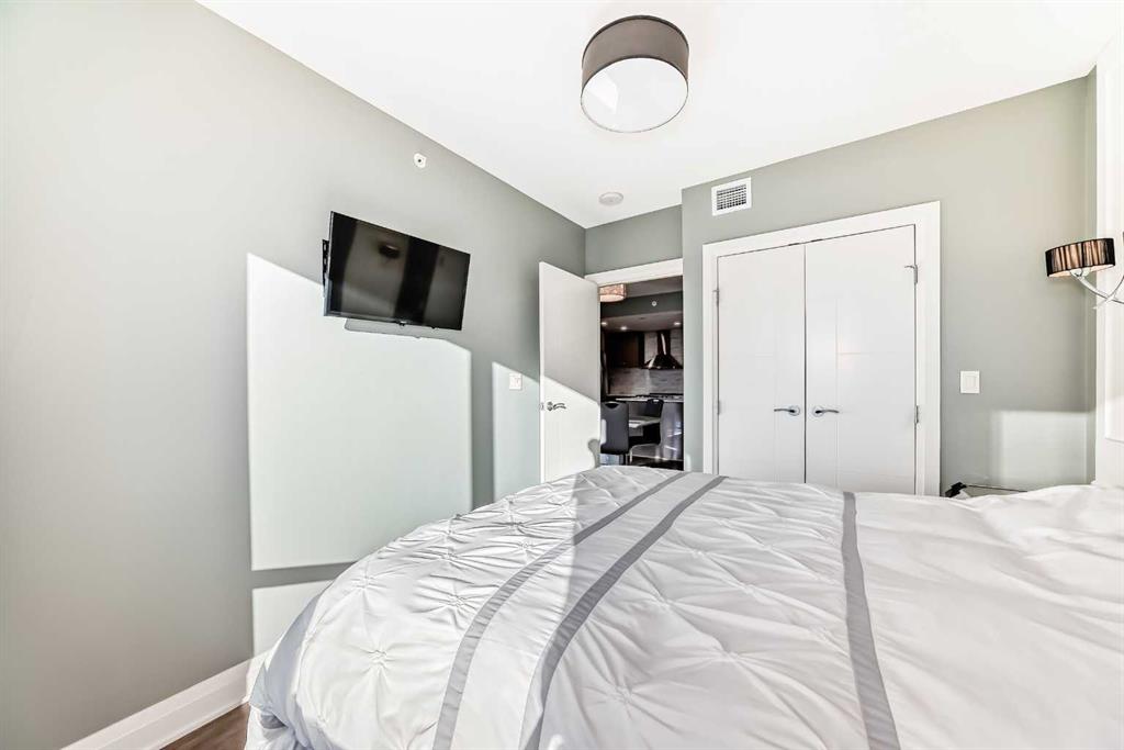 Experience the pinnacle of downtown luxury in this 2 bedroom, 2 bathroom, titled parking, SW-facing corner unit at VOGUE. Sold fully furnished and turnkey, this "Orion" floorplan is situated on one of the exclusive "Bedouin Suites" floors, featuring elite upgrades not found in the rest of the building. Floor-to-ceiling windows frame breathtaking mountain and river views, flooding the space with natural light. The interior boasts premium walnut built-ins, custom bedroom paneling, and a chef-inspired kitchen...