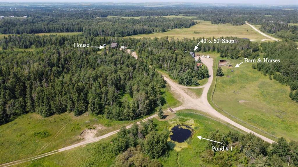 157.69 ACRES ~ FULLY DEVELOPED 2 STOREY WALKOUT ~ 5 BEDROOMS, 4 BATHS W/OVER 2000 SQ. FT. ABOVE GRADE~ 40' X 60' HEATED SHOP W/KITCHEN, BATHROOM, LAUNDRY & LOFT ~ SET UP FOR HORSES ~ 2 PONDS ~ Located just minutes east of Morningside and ideally positioned between Lacombe and Ponoka, this property offers the perfect blend of convenience and seclusion ~ Covered front veranda welcomes you to this well cared for home loaded with upgrades ~ The spacious foyer with 2-storey ceilings leads to the open concept mai...