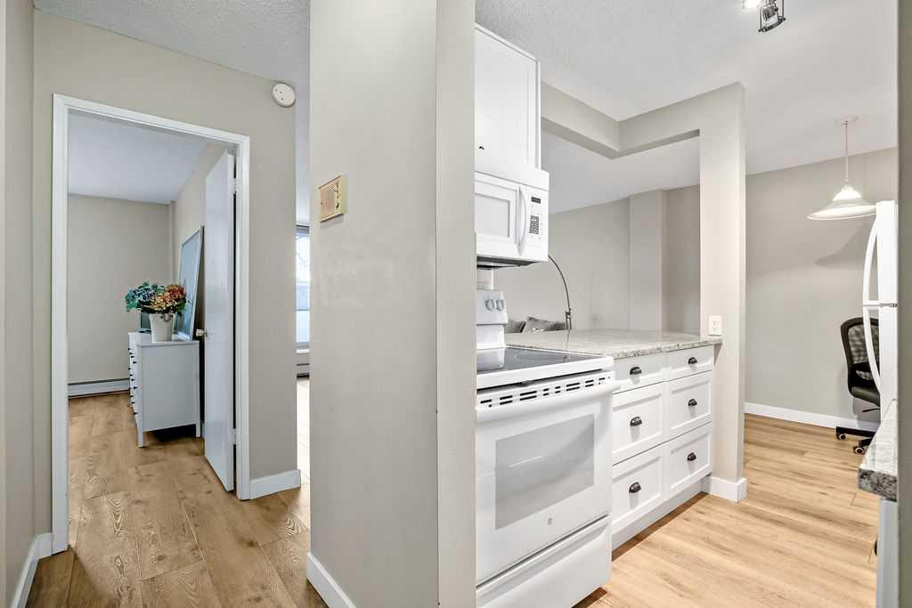 Welcome to your new home in the heart of Hillhurst! Nestled in one of Calgary’s most vibrant inner-city communities, this stylish 1-bedroom, 1-bath condo offers the perfect blend of modern living and unbeatable urban convenience. This 645 sq. ft. residence features durable and attractive vinyl plank flooring throughout, and a bright, open-concept layout highlighted by massive windows that flood the space with natural light. The updated kitchen showcases newer cabinetry with ample storage, beautiful stone co...