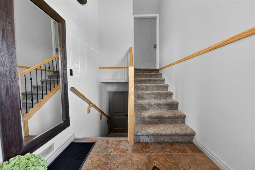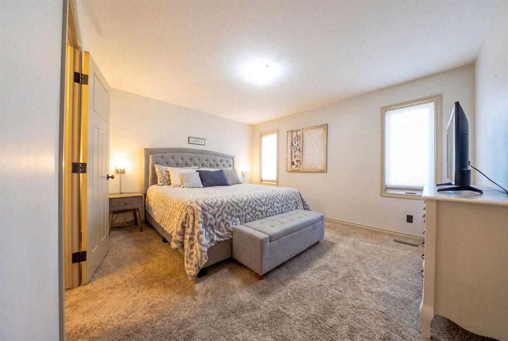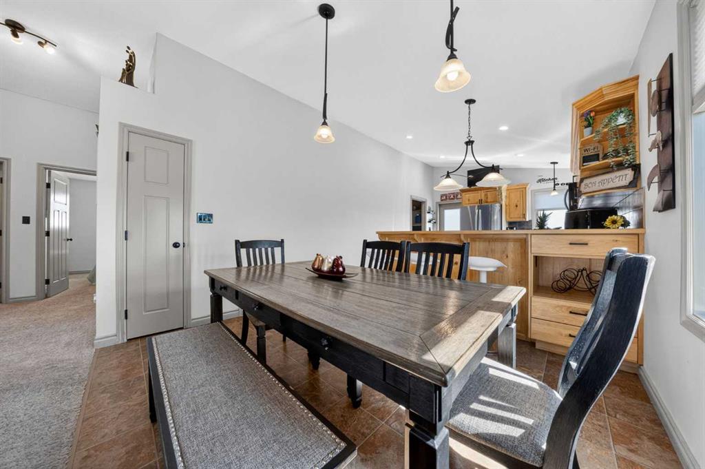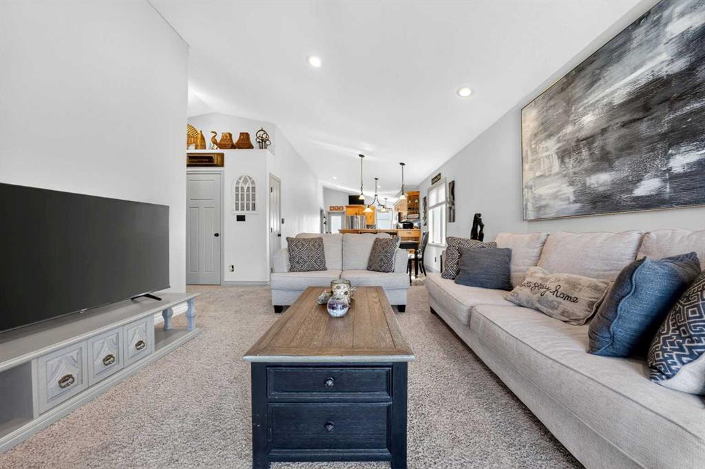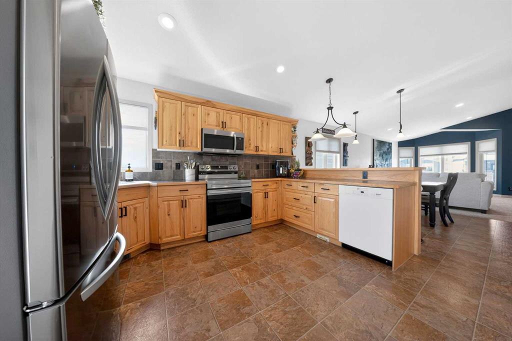 Well kept bi-level in Coalhurst with 6 BEDROOMS, 3 BATHROOMS, & an illegal basement suite backing field, park, and pond. Nice hardiboard plank exterior. Beyond Entry is walled off to upper and lower levels. Entry also has door to garage. Main floor features open plan with vaulted ceilings for living, dining, kitchen. Living room has nice windows for plenty of light. Dining space is a good size. Kitchen features wood cabinets with raised breakfast bar, new fridge and stove stainless steel appliances in 2025,...