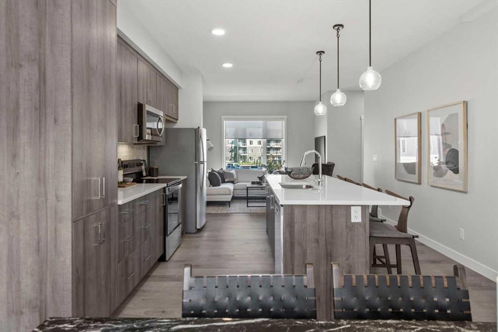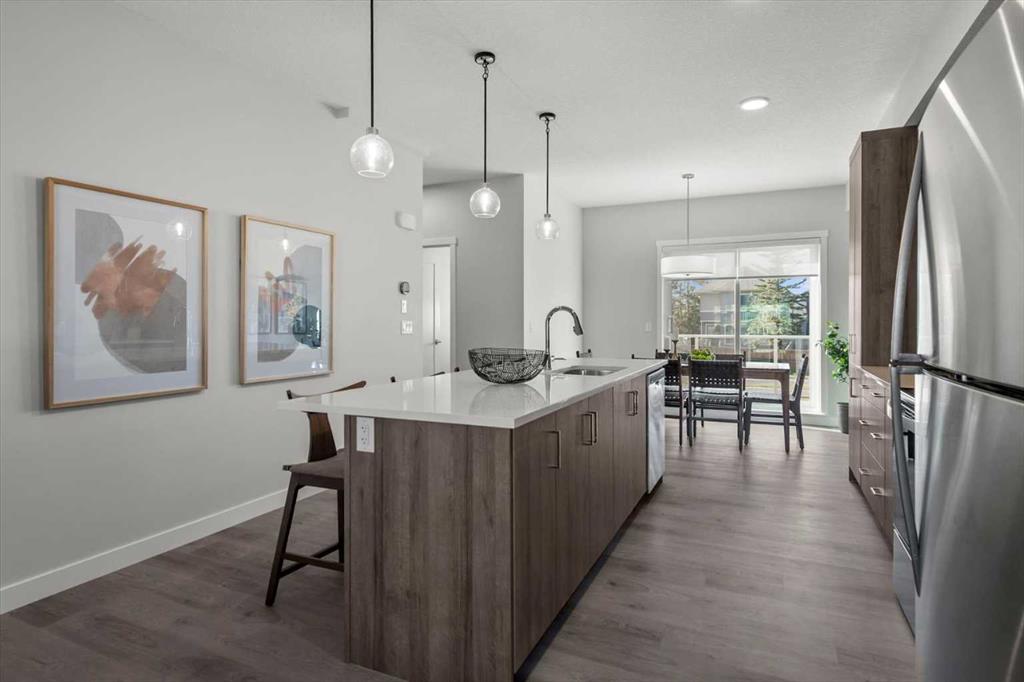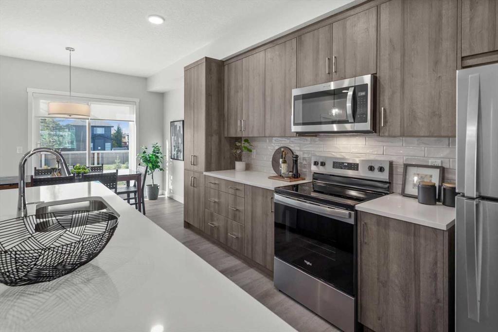 Discover contemporary living in this brand-new 2025-built townhome, ideally situated in the sought-after community of Shawnee Slopes in Southwest Calgary. With over 1,440 sq ft of thoughtfully designed space, this 3-bedroom, 2.5-bath home seamlessly combines modern style with everyday functionality. The open-concept main floor showcases a sleek, modern kitchen featuring rich cabinetry, premium stainless steel appliances, a built-in pantry, crisp white quartz countertops, and an oversized island that’s ideal...