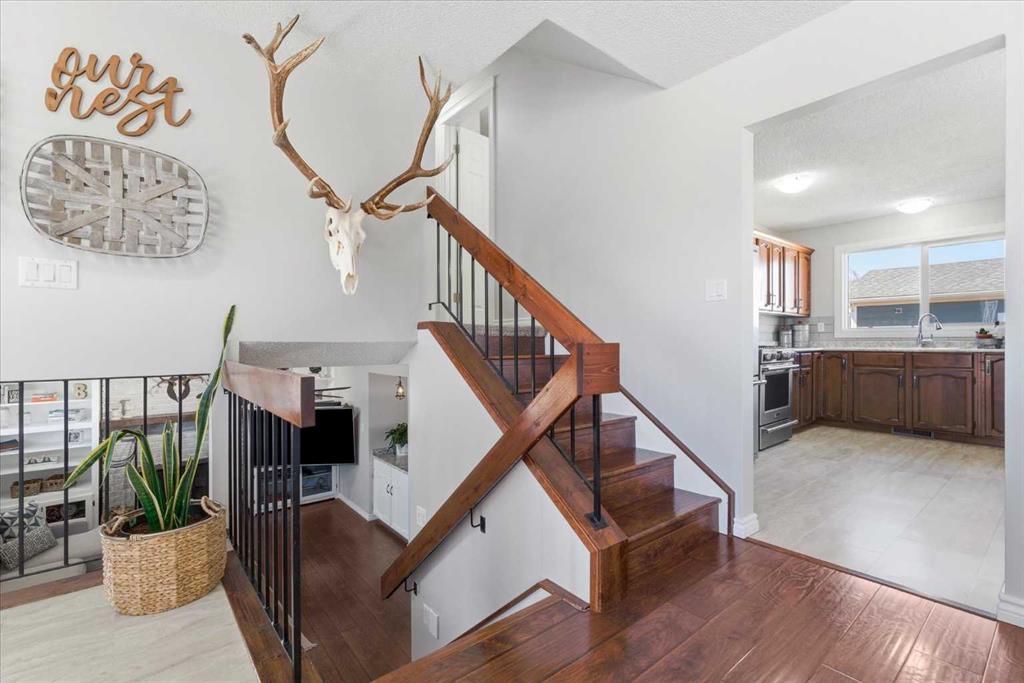 Exceptionally maintained, fully finished, and completely updated 4 bed/3 bath home with over 2,400 square feet of total living space! Sitting on a large corner lot in a quiet neighbourhood close to parks/schools, plus oversized double heated dream garage/shop - this is the one. So many updates inside and out including: triple pane windows, roof, Hardie board siding, freshly painted, furnace/hot water tank, hardwood flooring, professional series kitchen appliances (with gas range), countertops/backsplash, an...